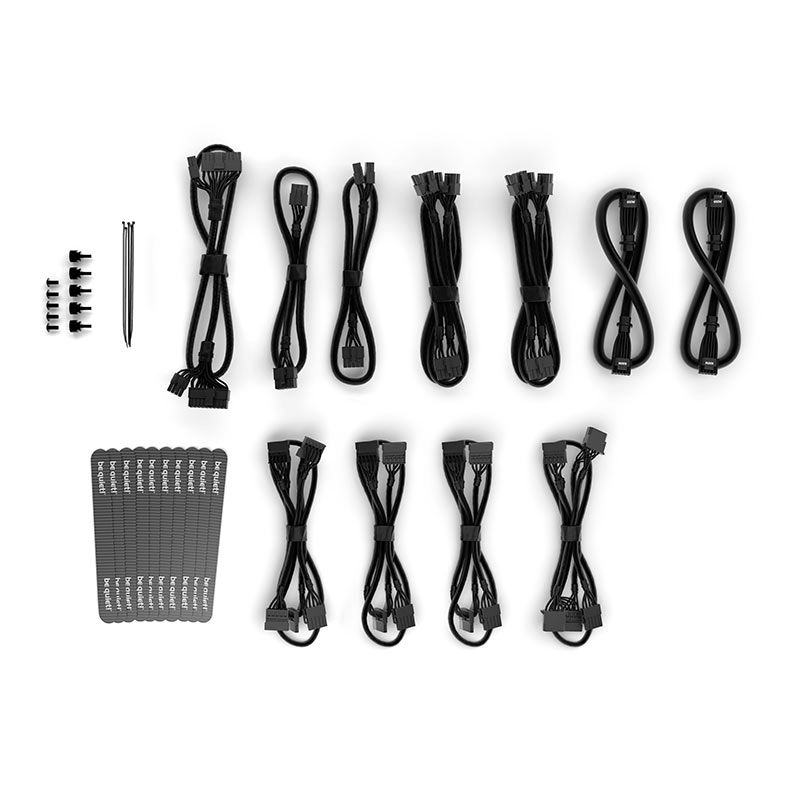 Cabos modulares com revestimento, medindo até 120 cm de comprimento, simplificam a instalação de componentes e reduzem a bagunça. Isso resulta em maior fluxo de ar e melhor refrigeração, mesmo nos gabinetes de PC maiores.