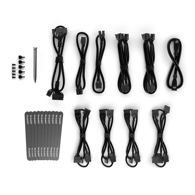 Cabos modulares com revestimento, medindo até 120 cm de comprimento, simplificam a instalação de componentes e reduzem a bagunça. Isso resulta em maior fluxo de ar e melhor refrigeração, mesmo nos gabinetes de PC maiores.