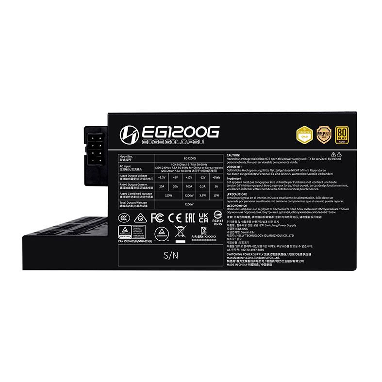 Fonte Lian Li EG1200G, 1200W, Full Modular, 80 Plus Gold, Preto, EG1200G-BK