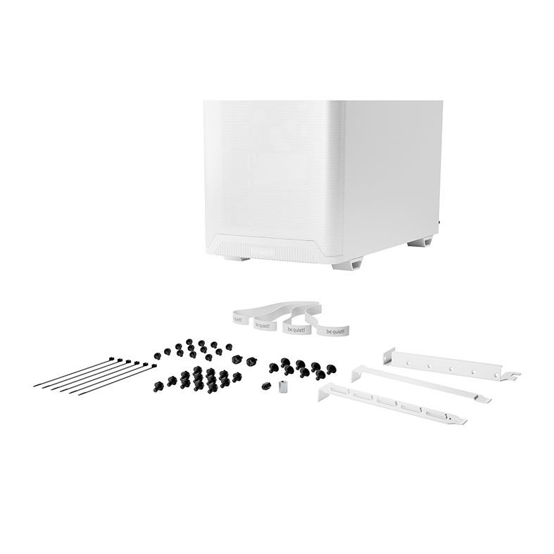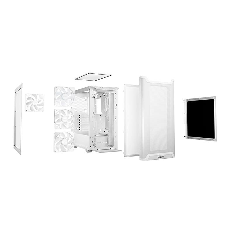 Apesar de suas dimensões compactas, o Pure Base 501 LX White oferece espaço suficiente para placas de vídeo de última geração e grandes coolers. É possível instalar facilmente três ventoinhas ou um radiador de até 360 mm na parte frontal, enquanto a área superior oferece espaço para até duas ventoinhas ou um radiador de até 240 mm.