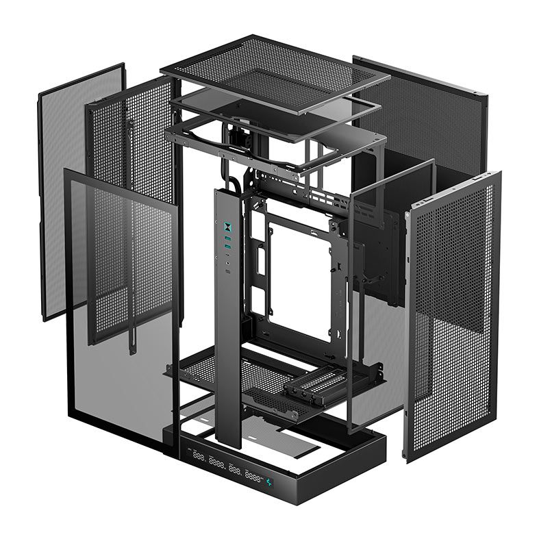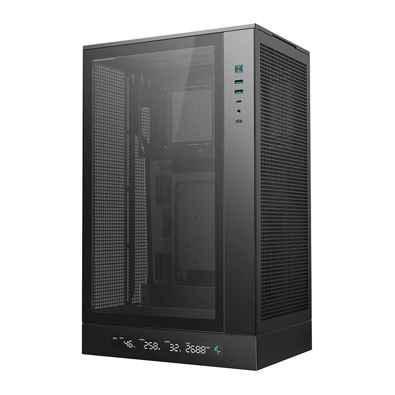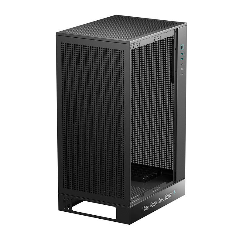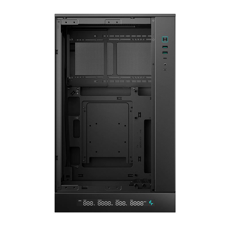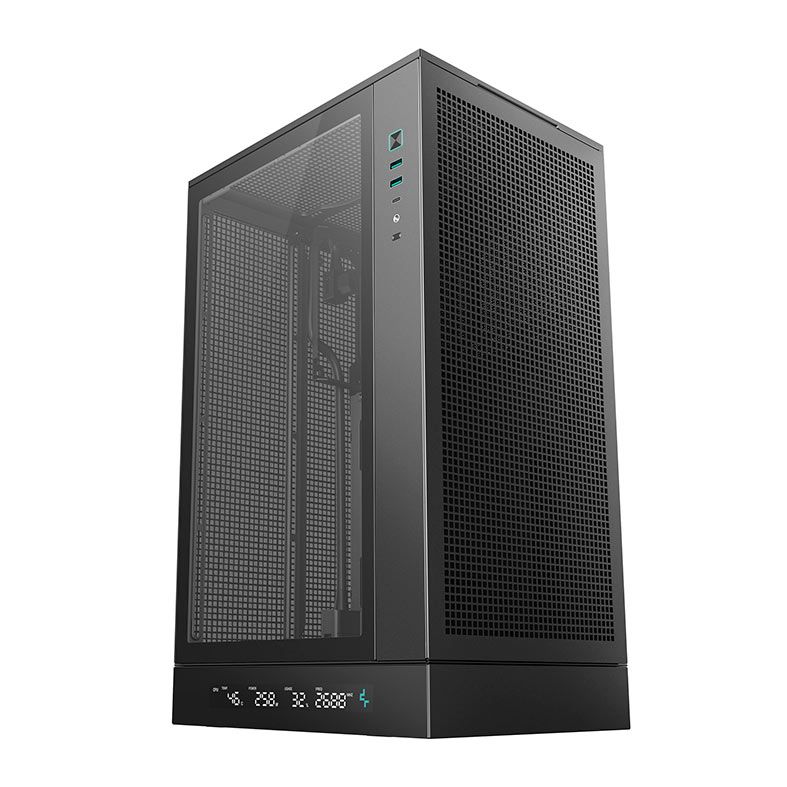 gabinete que ocupe menos espaço - Painel lateral em vidro temperado para exibir os componentes internos - Conectividade USB 3.0 Gen2 Tipo-C de alta velocidade integrada no painel frontal - Painel frontal perfurado proporcionando fluxo de ar para os componentes internos e também compatível com os enfeites DeepCool Pixel para decorar seu gabinete - Comporta fontes ATX e placas de vídeo de até 413mm sem fans instaladas no topo - Display integrado na base do gabinete para monitorar a condições dos componentes internos |