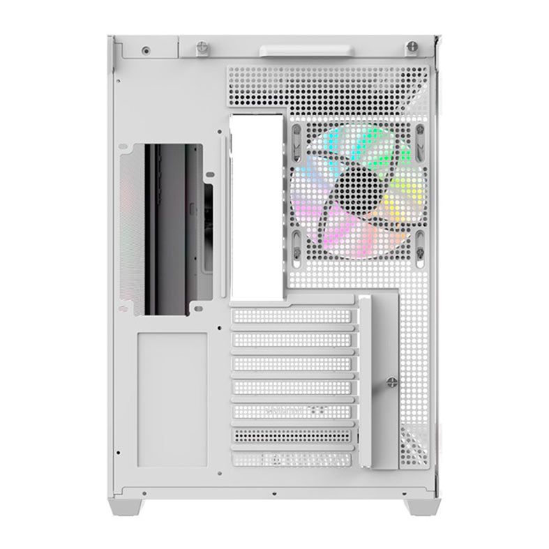 O gabinete View 380 WS ARGB Snow Mid Tower foi projetado para melhor visibilidade, apresentando painéis frontal e lateral em vidro temperado, permitindo que os usuários desfrutem do seu sistema com um toque de estilo.