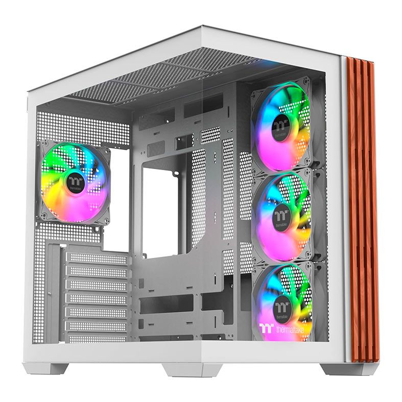 Gabinete Gamer Thermaltake View 380 Wood Style Snow, ARGB, Mid-Tower, Lateral de Vidro, Com 3 Fans, Branco, CA-1Z2-00M6WN-WS