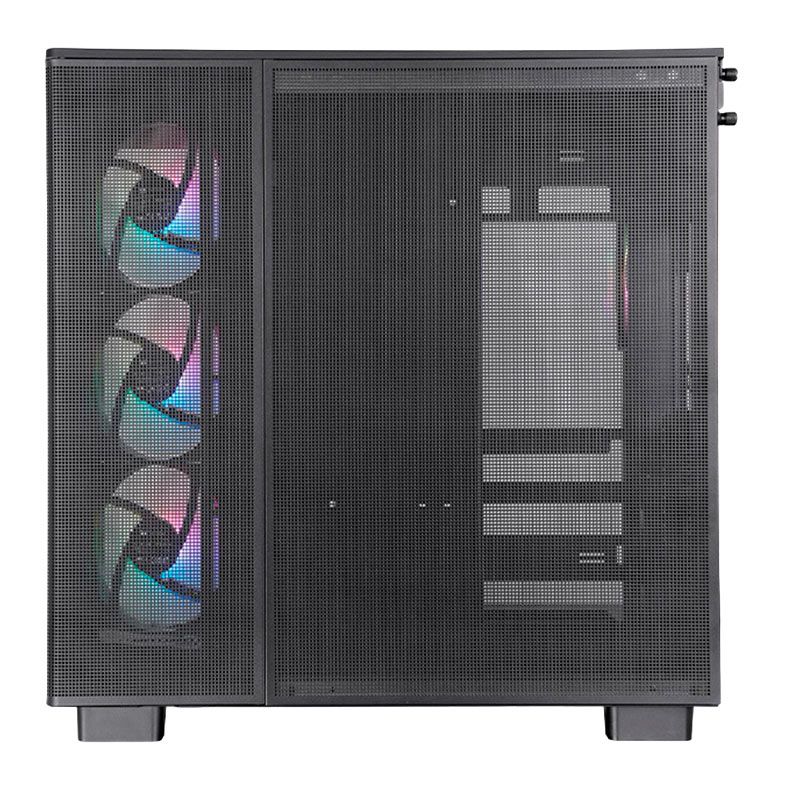 O gabinete View 380 XL TG ARGB Mid Tower vem com três ventoinhas ARGB Lite de 120 mm com rolamento hidráulico na lateral da placa-mãe e uma ventoinha ARGB Lite de 120 mm com rolamento hidráulico na parte traseira. Seus fascinantes efeitos de iluminação podem ser controlados pelo software da placa-mãe da ASUS, GIGABYTE, MSI e ASRock.