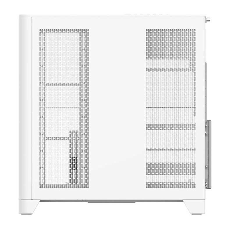 O gabinete View 390 Air Snow Mid Tower apresenta um painel lateral curvo em vidro temperado de 4 mm, conferindo-lhe um visual diferenciado.