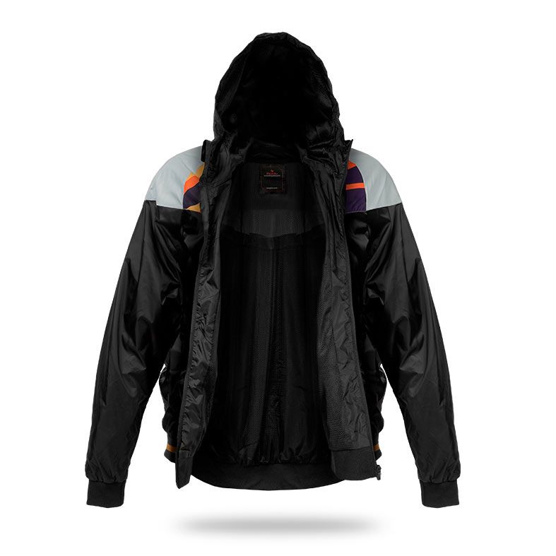 A jaqueta conta com um bolso interno de segurança para guardar objetos de valor, e o fechamento do Capuz possui protetor de rosto.