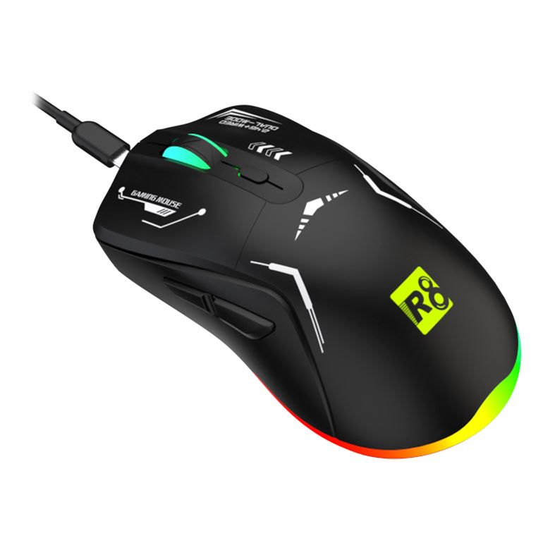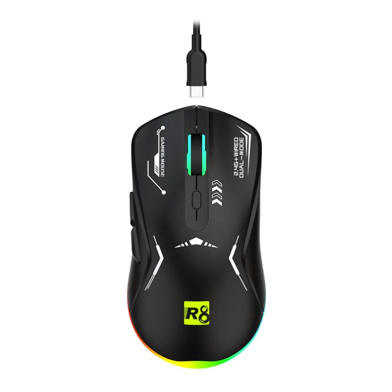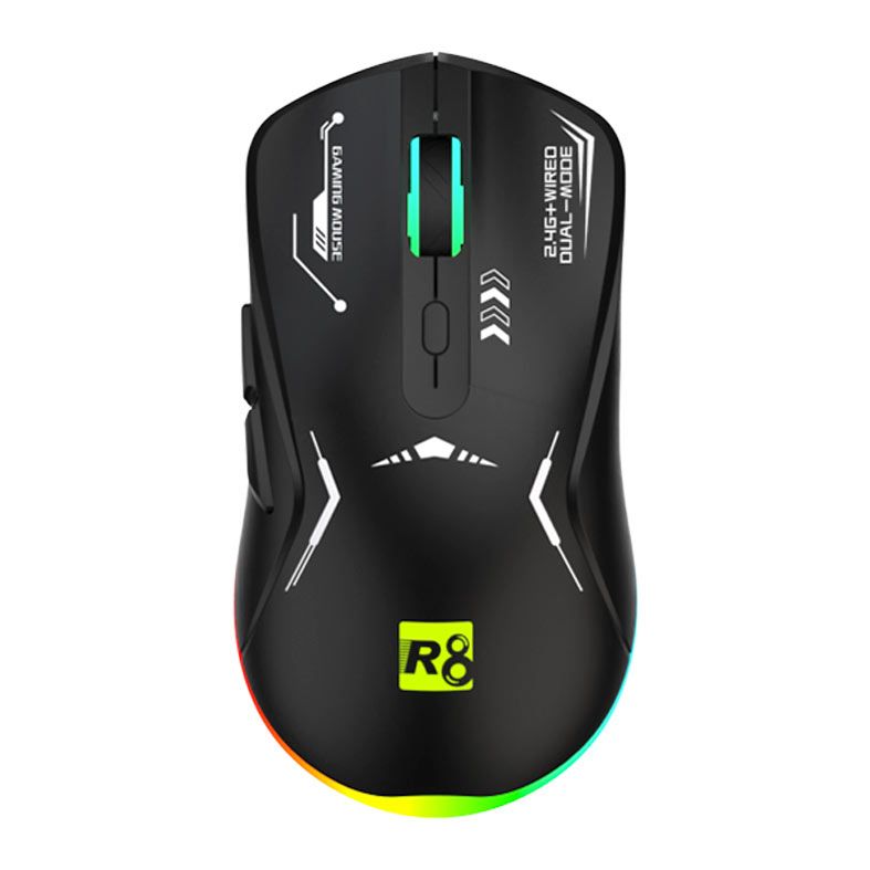 Mouse Gamer R8 G305, RGB, 4800DPI, 6 Botoes, Wireless, Preto