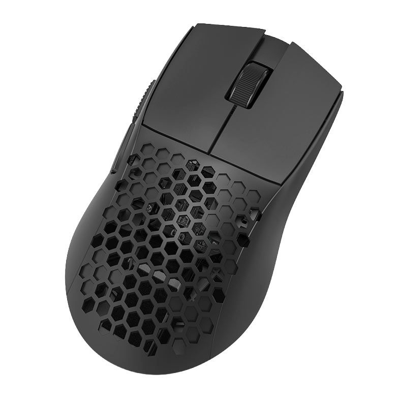 A carcaça perfurada no padrão honeycomb foi projetada para reduzir significativamente o peso do mouse, resultando em apenas 49g e proporcionando movimentos mais rápidos, precisos e naturais. Essa estrutura leve diminui o esforço durante o uso, contribuindo para menor fadiga em longas sessões de jogo ou trabalho.