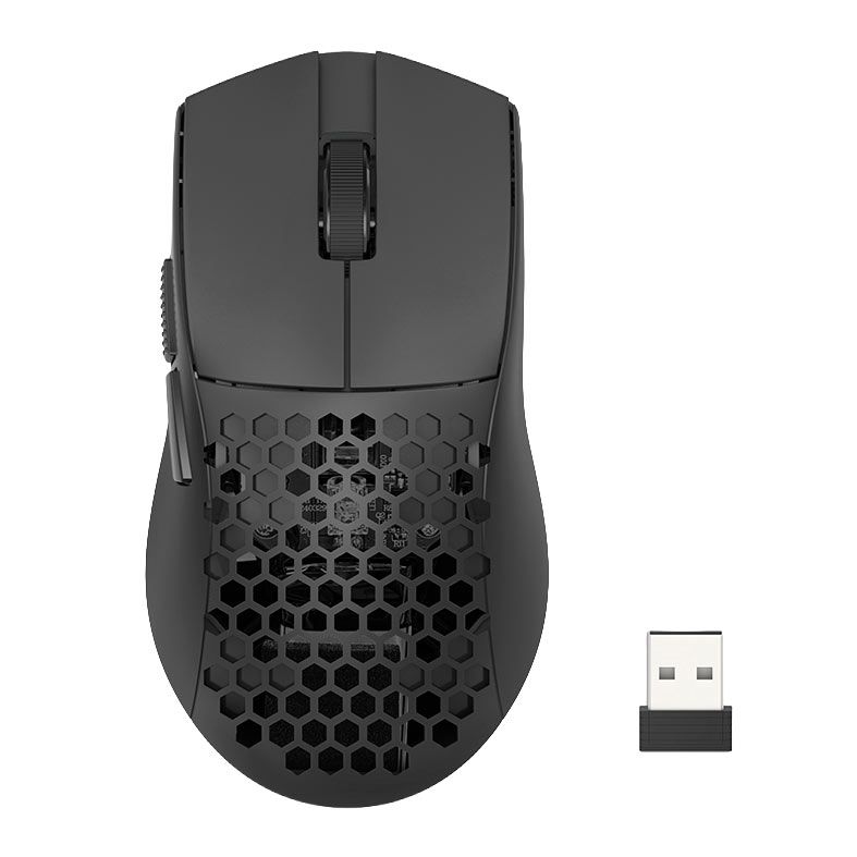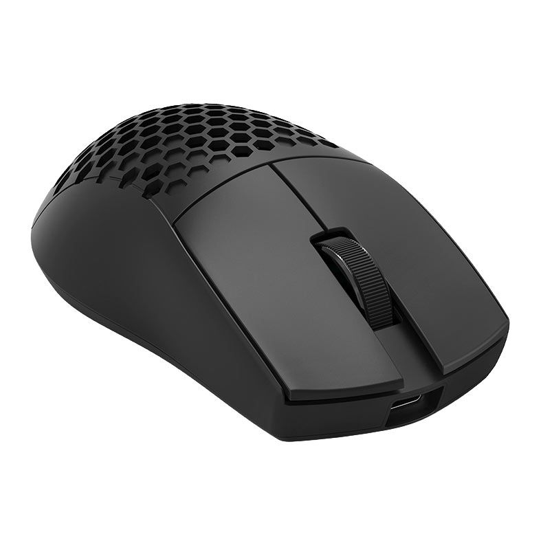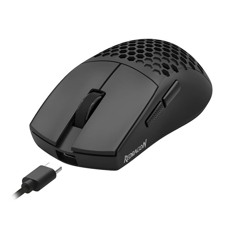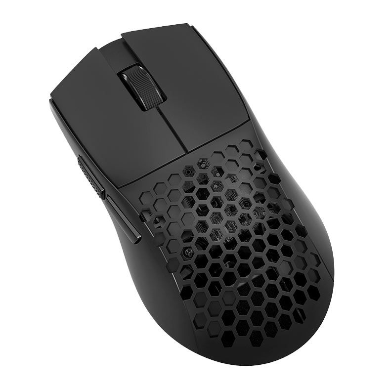 sendo utilizado via receptor sem fio USB 2.4GHz, Bluetooth ou então cabeado via USB Tipo-C - Acompanha cabo estilo paracord com alta flexibilidade para que o mouse possa ser utilizado enquanto está carregando - Carcaça perfurada no padrão honeycomb para aliviar peso resultando em apenas 49g - Botão lateral frontal texturizado facilitando a diferenciação na ponta dos dedos - Sensor de alta performance podendo ser ajustado até 10000 DPI |