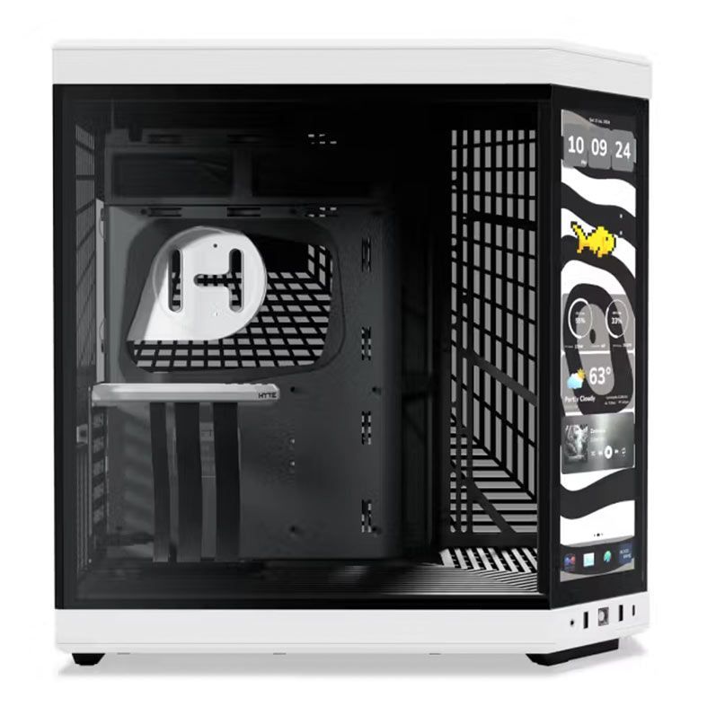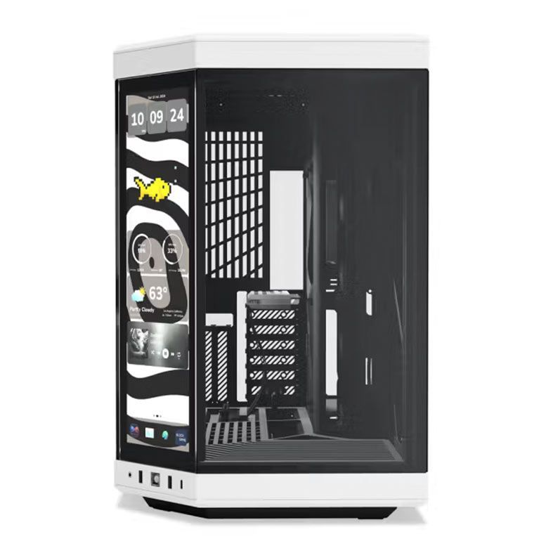 O Hyte Y70 Touch Infinite é um gabinete premium de câmara dupla que se destaca por sua tela touchscreen 2.5K de 14,9" integrada para monitoramento e personalização. Com vidros panorâmicos sem colunas, ele foi projetado para exibir sua placa de vídeo na vertical (cabo Riser incluso) e suportar hardware e refrigeração de altíssimo desempenho. É a vitrine perfeita para entusiastas que buscam unir estética impecável, interatividade digital e excelente fluxo de ar no setup.