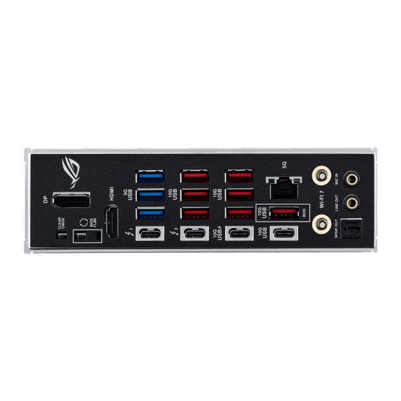 | Painel traseiro: | 2x portas Thunderbolt™ 4 (2 portas USB Type-C® ) 9x portas USB 10Gbps (7 portas Type-A + 1 porta USB Type-C® + 1 porta USB Type-C® com carregamento rápido PD de até 30W) 3x portas USB 5Gbps (3 portas Type-A) 1x porta DisplayPort 1x porta HDMI® 1x módulo Wi-Fi 1x porta Ethernet Realtek 5Gb 2x conectores de áudio banhados a ouro 1x porta de saída óptica S/PDIF 1x botão BIOS FlashBack™ 1x botão Clear CMOS |