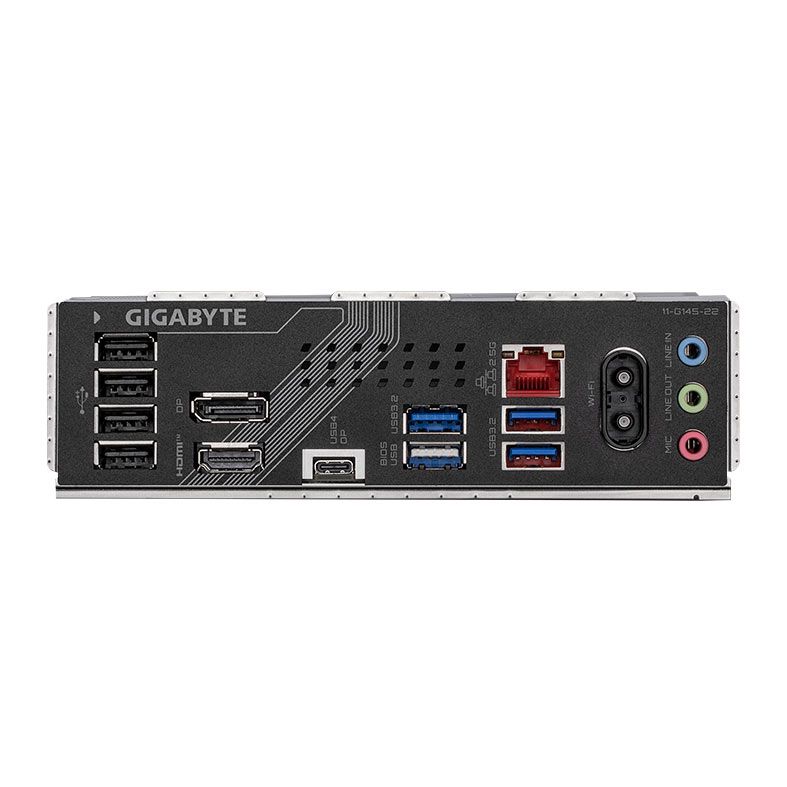 | Painel Traseiro: | 1 x Porta HDMI (Nota) 1 x Porta DisplayPort (Nota) 1 x Porta USB4® USB Type-C® (DisplayPort (Nota)) 3 x Portas USB 3.2 Gen 1 5 x Portas USB 2.0/1.1 2 x Conectores de antena (2T2R) 1 x Porta RJ-45 3 x Conectores de áudio (Nota) O suporte real pode variar de acordo com a CPU. |