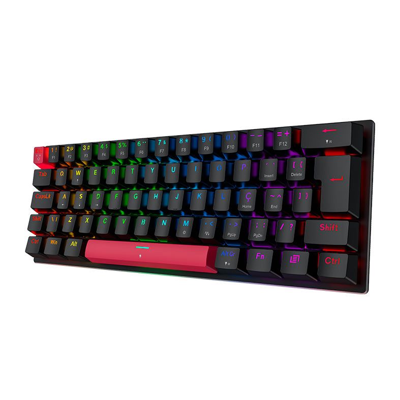 61 Teclas com Formato 60%: mais espaço para o mouse, movimentos amplos e postura centralizada no setup. ABNT2: padrão brasileiro com as teclas essenciais, pronto para o dia a dia e para o chat in game. Mesa otimizada sem abrir mão da funcionalidade essencial.