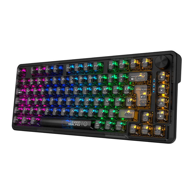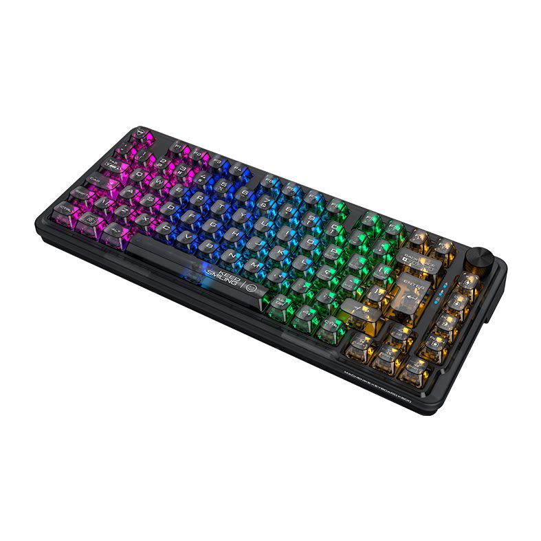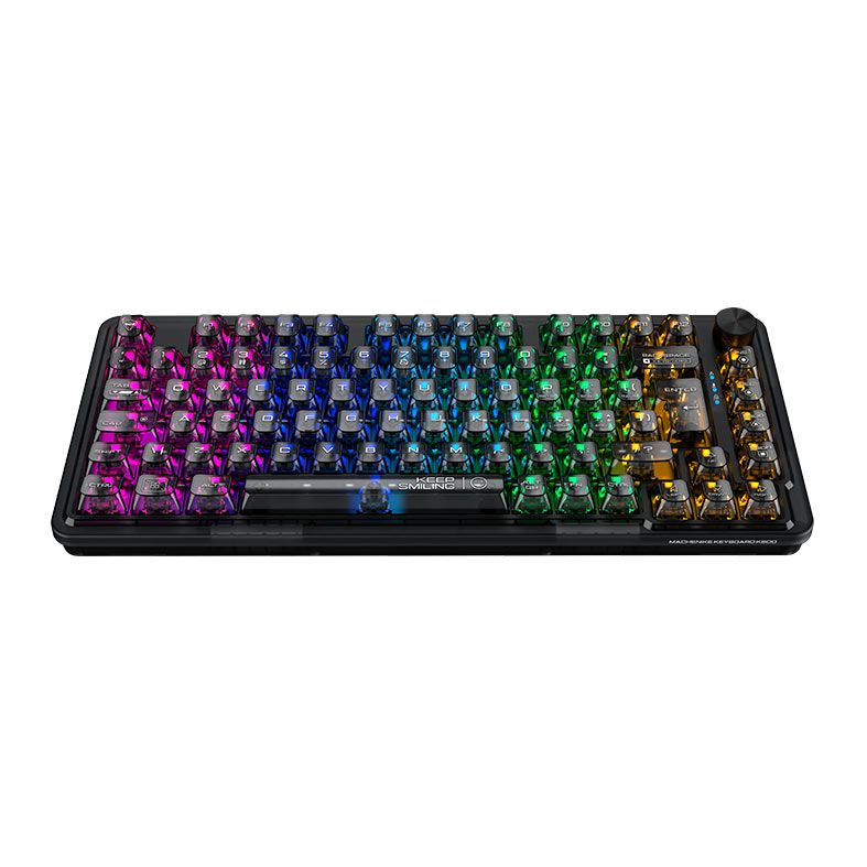 É o design "Tech" da Machenike elevado ao nível máximo de brilho e nitidez. Hot-Swappable e Dial Multimídia, liberdade do Hot-Swap permite que você substitua switches facilmente, enquanto o Dial de comando oferece controle intuitivo de volume e mídia em tempo real, sem precisar sair do jogo ou da sua aplicação de trabalho.